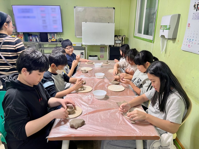 하위메뉴 센터소개 지역아동센터란 역할 및 서비스 부흥소개 찾아오시는길 부흥소식 공지사항 가정통신문 행사앨범 센터일정 월별식단 프로그램안내 프로그램 교육일정 자원봉사/후원 후원안내 부흥엔젤스 커뮤니티 한줄메모 자유게시판 부흥앨범 동영상 함께해요 사이버상담실 자료실 본문 부흥앨범 홈 > 센터소개 > 지역아동센터란 > 역할 및 서비스 > 부흥소개 > 찾아오시는길 > 부흥소식 > 공지사항 > 가정통신문 > 행사앨범 > 센터일정 > 월별식단 > 프로그램안내 > 프로그램 > 교육일정 > 자원봉사/후원 > 후원안내 > 부흥엔젤스 > 커뮤니티 > 한줄메모 > 자유게시판 > 부흥앨범 > 동영상 > 함께해요 > 사이버상담실 > 자료실 갤러리(글보기) 제 목 11월 4주차 도예수업 작성자 부흥지역아동센터 등록일 2025년 11월 27일 조회수 118 2025년 11월 26일 수요일오늘 도예 시간에는 겨울을 주제로 한 작은 작품들을 만들어보았습니다.도자 흙을 손으로 조물조물 빚으며 산타, 루돌프, 눈사람처럼 겨울을 닮은 캐릭터들을 직접 표현해봤는데요!처음엔 어렵다고 느꼈지만 금세 흙으로 자신만의 겨울을 표현했습니다.각자의 상상력으로 멋진 작품을 완성한 후에는 친구들한테 본인의 작품을 소개하는 시간을 가지며 뿌듯함도 느낄 수 있는 시간이었습니다 🙂 부흥앨범 ※ 비밀번호를 입력해 주세요. 댓글 목록 이름 내용 댓글 등록 1 댓글 삭제 ※ 삭제하시겠습니까? 11월 4주차 도예… 11월 4주차 도예… 베이킹 원데이 … 11월 1주차 도예… 환경미화활동
