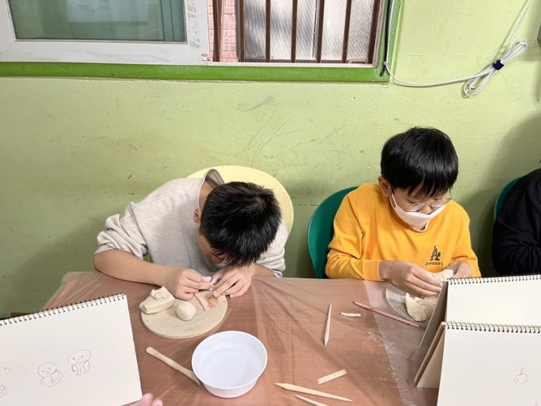 하위메뉴 센터소개 지역아동센터란 역할 및 서비스 부흥소개 찾아오시는길 부흥소식 공지사항 가정통신문 행사앨범 센터일정 월별식단 프로그램안내 프로그램 교육일정 자원봉사/후원 후원안내 부흥엔젤스 커뮤니티 한줄메모 자유게시판 부흥앨범 동영상 함께해요 사이버상담실 자료실 본문 부흥앨범 홈 > 센터소개 > 지역아동센터란 > 역할 및 서비스 > 부흥소개 > 찾아오시는길 > 부흥소식 > 공지사항 > 가정통신문 > 행사앨범 > 센터일정 > 월별식단 > 프로그램안내 > 프로그램 > 교육일정 > 자원봉사/후원 > 후원안내 > 부흥엔젤스 > 커뮤니티 > 한줄메모 > 자유게시판 > 부흥앨범 > 동영상 > 함께해요 > 사이버상담실 > 자료실 갤러리(글보기) 제 목 10월 4주차 도예수업 작성자 부흥지역아동센터 등록일 2025년 10월 23일 조회수 346 2025년 10월 22일 수요일오늘 도예 시간에는 ‘나만의 연필꽂이 만들기’ 활동을 진행했어요..스케치북에 자신이 만들고 싶은 디자인을 구상하고 스케치한 뒤,백자토를 이용해 연필 한 자루를 꽂을 수 있는 귀여운 연필꽂이를 만들었답니다.완성 후에는 원하는 색으로 칠한 뒤, 개성 넘치는 작품으로 완성했어요 🙂오늘 도예 활동을 통해 부흥 친구들은 창의력과 표현력을 마음껏 발휘하며 성취감을 느낄 수 있었던 시간이었습니다. 부흥앨범 ※ 비밀번호를 입력해 주세요. 댓글 목록 이름 내용 댓글 등록 1 댓글 삭제 ※ 삭제하시겠습니까? 10월 5주차 도예… 10월 4주차 도예… 10월 3주차 도예… 명절맞이 윷놀이 9월 야외체육활동