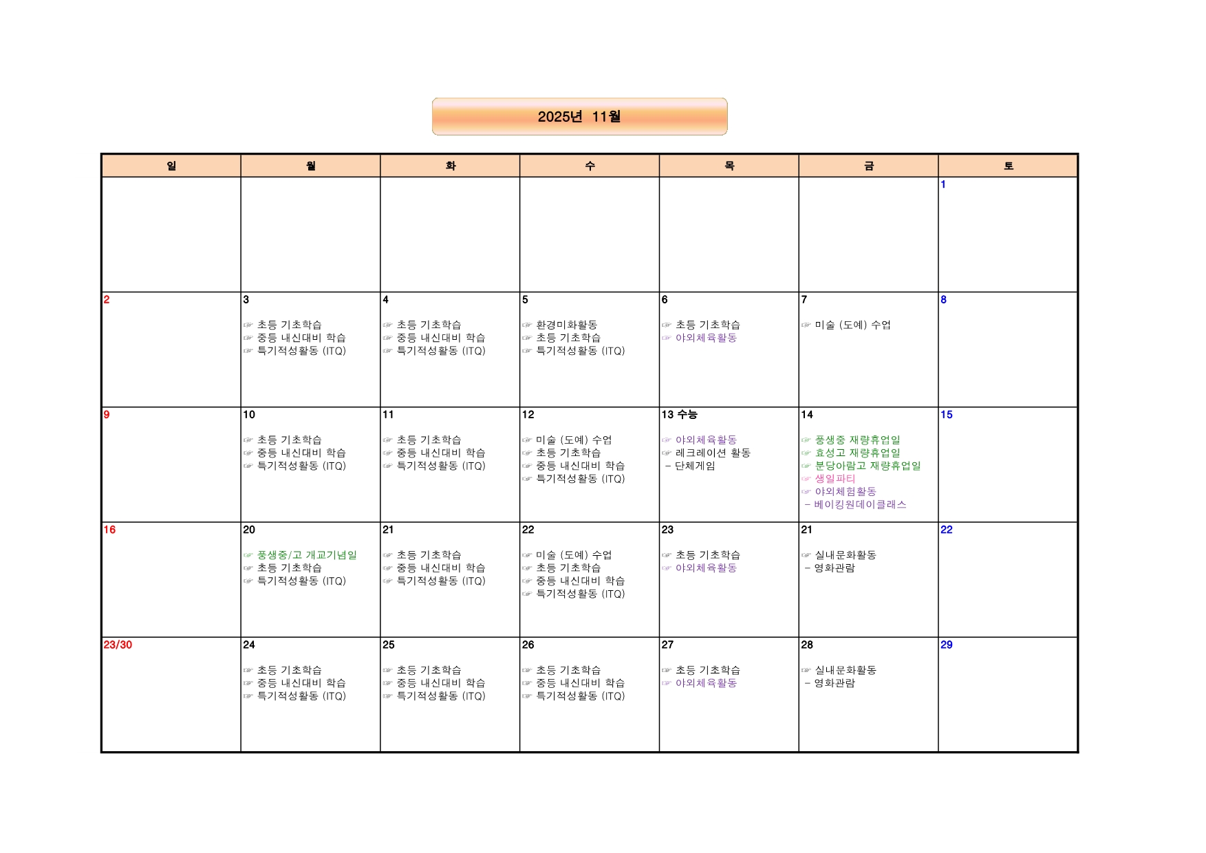 하위메뉴 센터소개 지역아동센터란 역할 및 서비스 부흥소개 찾아오시는길 부흥소식 공지사항 가정통신문 행사앨범 센터일정 월별식단 프로그램안내 프로그램 교육일정 자원봉사/후원 후원안내 부흥엔젤스 커뮤니티 한줄메모 자유게시판 부흥앨범 동영상 함께해요 사이버상담실 자료실 본문 공지사항 홈 > 센터소개 > 지역아동센터란 > 역할 및 서비스 > 부흥소개 > 찾아오시는길 > 부흥소식 > 공지사항 > 가정통신문 > 행사앨범 > 센터일정 > 월별식단 > 프로그램안내 > 프로그램 > 교육일정 > 자원봉사/후원 > 후원안내 > 부흥엔젤스 > 커뮤니티 > 한줄메모 > 자유게시판 > 부흥앨범 > 동영상 > 함께해요 > 사이버상담실 > 자료실 재능기부하기 글보기 제 목 2025년 11월 일정표 작성자 부흥지역아동센터 등록일 2025년 10월 31일 조회수 19 공지사항 ※ 비밀번호를 입력해 주세요. 이전글/다음글 목록 다음글다음글이 없습니다. 이전글2025년 10월 일정표