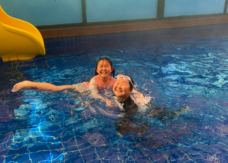따뜻한 온수풀 수영장에서 신나게 물놀이를 하며 겨울 추위도 잊고 마음껏 뛰놀았고,